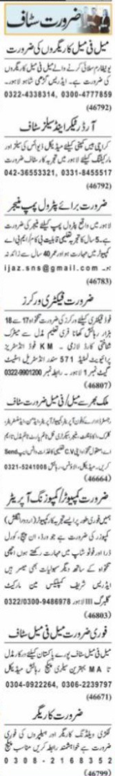 Vacant posts including administrator, manager, carpenter, tailor, worker, welder, helper, petrol pump manager, order taker, sales staff, accountant, clerk, office staff, factory worker, composer, admin officer, computer operator, marketing staff, secretary and phone operator are announced in Private Company Lahore, lahore Punjab Pakistan as per 20 June 2022 advertisement in daily Nawaiwaqt Newspaper. Educational qualifications required Matric, Intermediate, Middle and Bachelor etc.