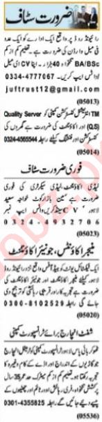 Private Company invites applications for job positions advertised in daily Nawaiwaqt dated 27 November 2023 for following vacancies in Lahore, lahore Punjab Pakistan.