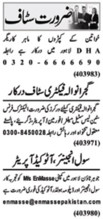 Private Company invites applications for job positions advertised in daily Nawaiwaqt dated 5 May 2025 for following vacancies in Johar Town Lahore, lahore Punjab Pakistan.