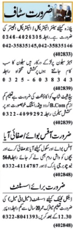 Private Company jobs advertisement dated about 9 September 2024 in daily Nawaiwaqt Newspaper invites application for the vacant post of aya, beauty parlor staff, accountant, electrical engineer, office boy, engineer, assistant and hair stylist in Lahore, lahore Punjab Pakistan. Matric, DAE, B.com, B.E, Bachelor, Intermediate and Middle etc. educational qualification will be preferred.