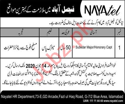 Nayatel Faisalabad Jobs 2020 For Subedar Major