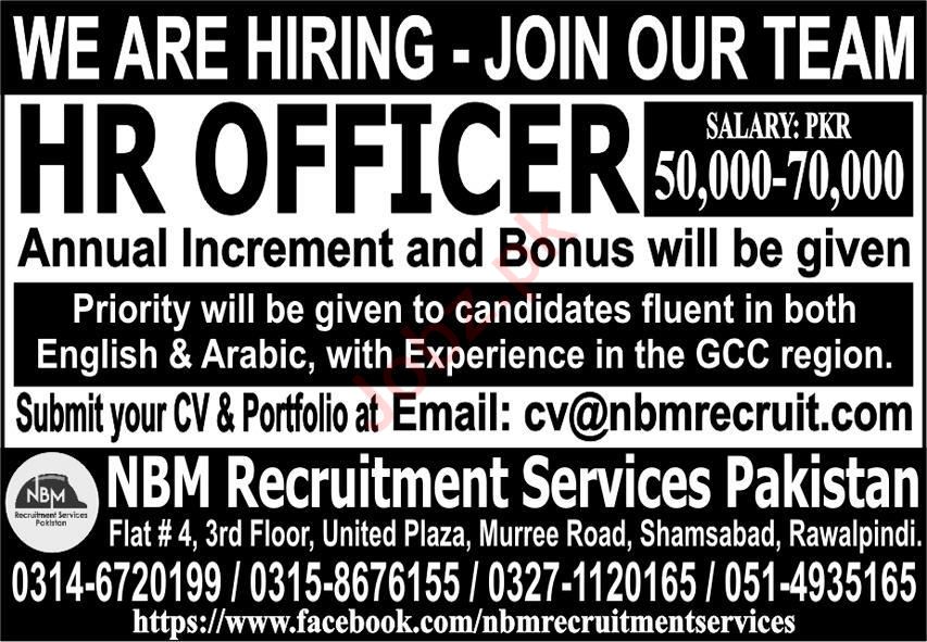 NBM Recruitment Services Pakistan Rawalpindi, rawalpindi Punjab Pakistan invites applications from eligible candidates for the post of hr officer as per advertisement of April 21, 2024 published in daily Express Newspaper. Candidates with Master, Bachelor and MS etc. educational background will be preferred.