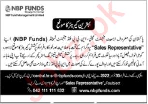 Vacant posts including sales represntative are announced in NBP Funds Management Limited Lahore, lahore Punjab Pakistan as per 6 November 2022 advertisement in daily Jang Newspaper. Bachelor etc. educational qualification will be preferred.