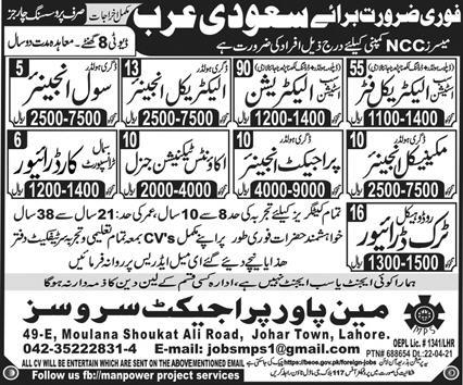 Latest Manpower Project Services Engineering Posts Saudi Arabia 2025