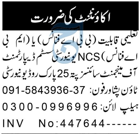NCS University System Peshawar Jobs 2025 for Accountant