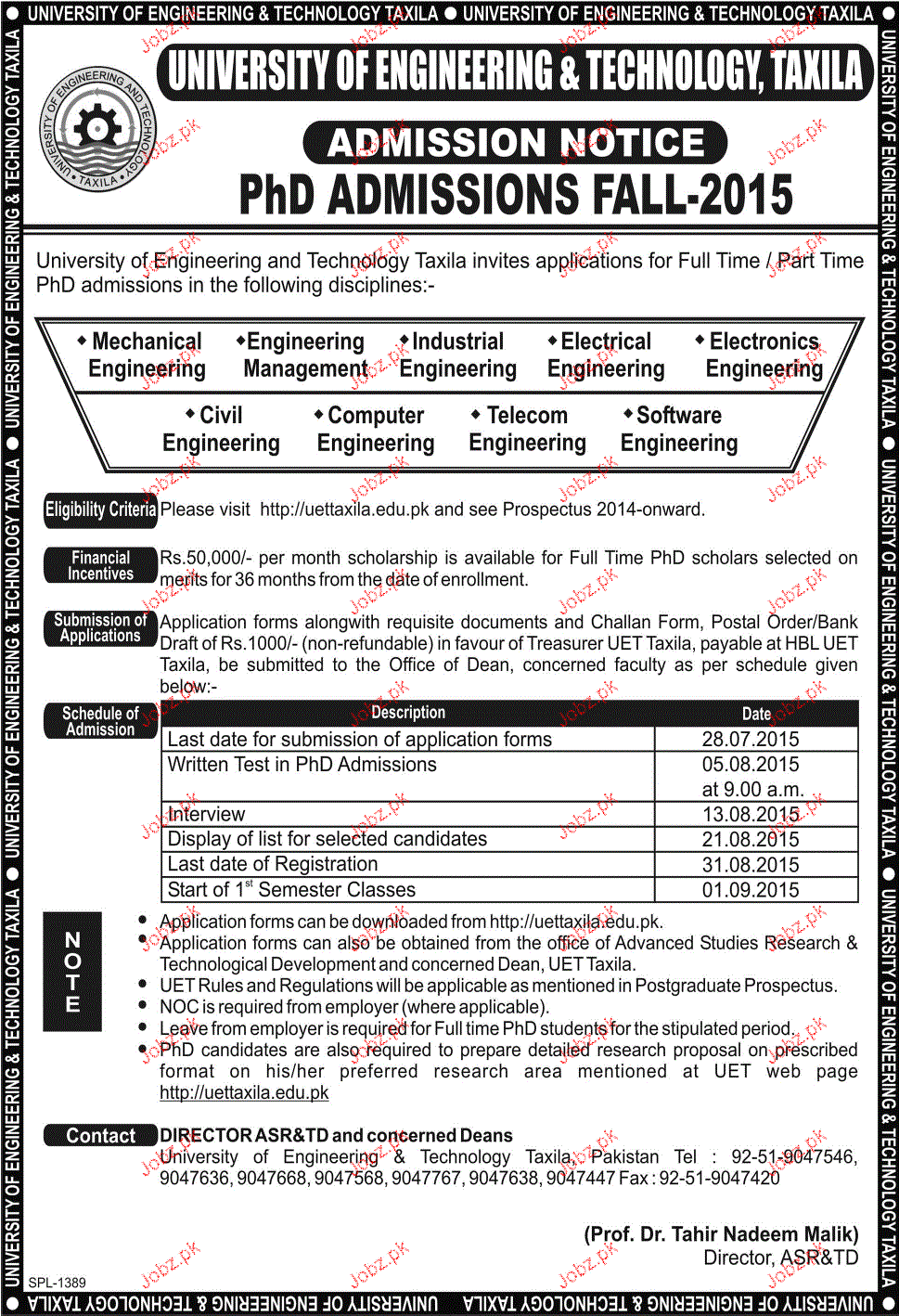 NED University of Engineering & Technology Admission in Phd in Taxila. Read newspaper ad for exact details.