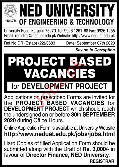 Vacancies in NED University of Engineering and Technology Advertisement September 2020