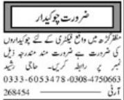 Vacant posts including chowkidar are announced in Private Factory Muzaffargarh, muzaffargarh Punjab Pakistan as per 12 October 2022 advertisement in daily Khabrain Newspaper. Preferred Education is Middle and Primary etc.