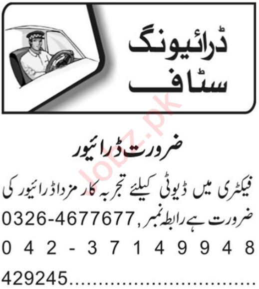 Private Factory latest Classifieds Driving jobs and others can be applied till undefined NaN, NaN or as per closing date in newspaper ad. Read complete ad online to know how to apply on latest Private Factory job opportunities.
