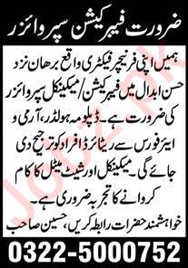 Need Fabrication Supervisor In Private Factory Hassan Abdal