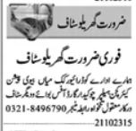 Private Industry latest Classifieds House Staff jobs and others can be applied till undefined NaN, NaN or as per closing date in newspaper ad. Read complete ad online to know how to apply on latest Private Industry job opportunities.