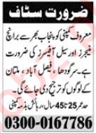 Private Company Lahore, lahore Punjab Pakistan invites applications from eligible candidates for the post of sale officer and manager as per advertisement of July 10, 2023 published in daily Jang Newspaper. Bachelor, Master and MS etc. educational qualification will be preferred.