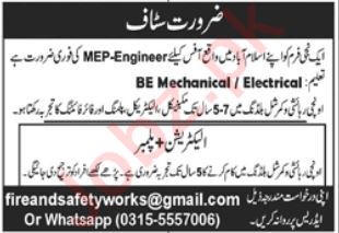 Private Firm jobs advertisement dated about 4 September 2022 in daily Jang Newspaper invites application for the vacant post of mechanical engineer, electrician, plumber, mep engineer and electrical engineer in Islamabad, islamabad Islamabad Pakistan. Preferred Education is Middle, Bachelor, Matric and Master etc.