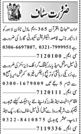 Need Staff At Private Organization Lahore