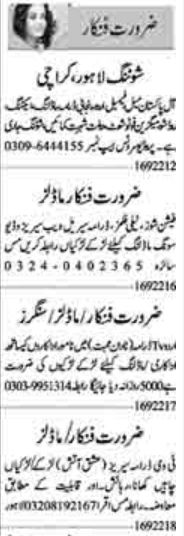 Production House is looking for candidates for following posts as per job advertisement published in daily Dunya Newspaper of September 16, 2022 for location Lahore, lahore Punjab Pakistan: