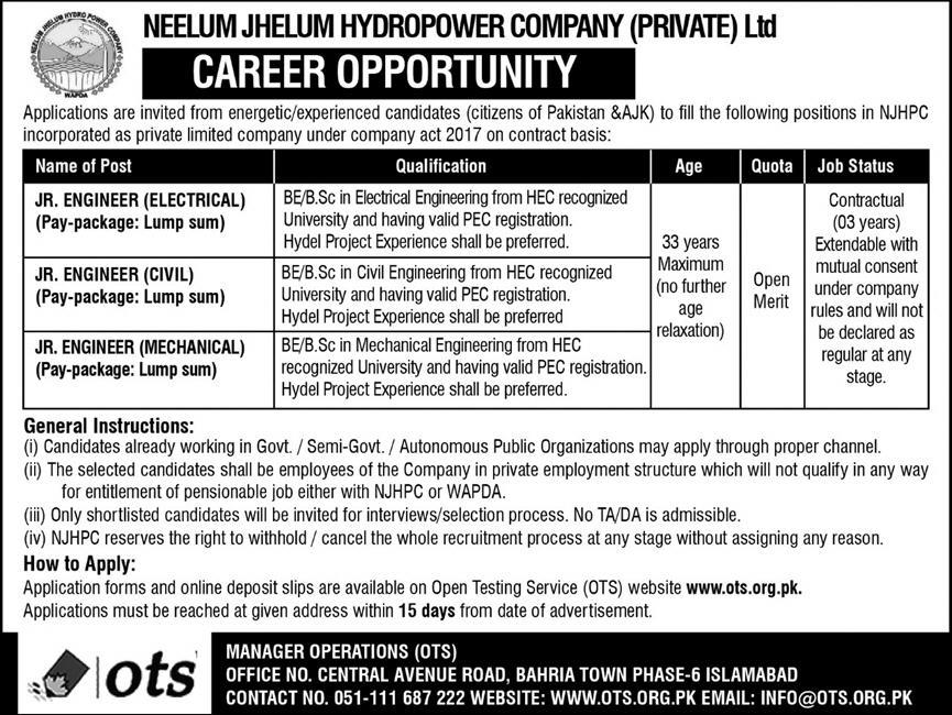 Neelum Jhelum Hydropower Company Jobs Via OTS