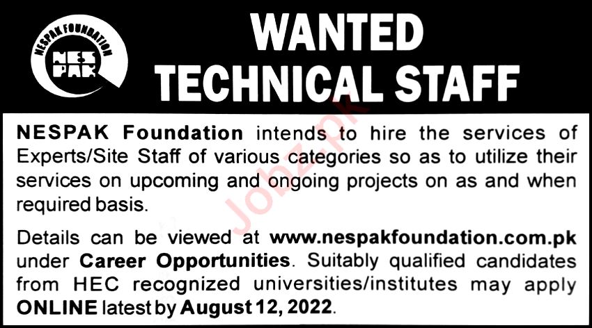 Nespak Foundation Lahore Jobs 2022 for Technical Staff