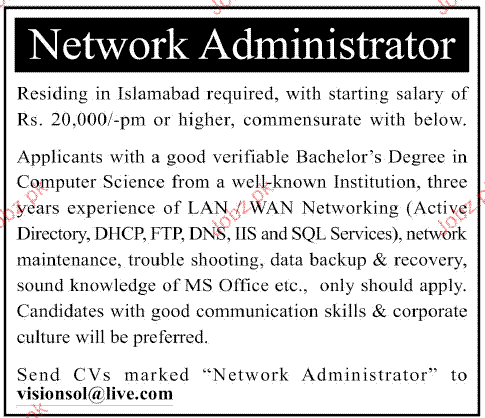 Apply as per details in job advertisement. Login to view further details of how to apply via https://www.jobz.pk online.