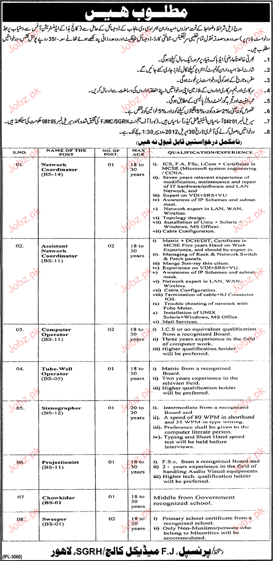 Apply as per details in job advertisement. Login to view further details of how to apply via https://www.jobz.pk online.