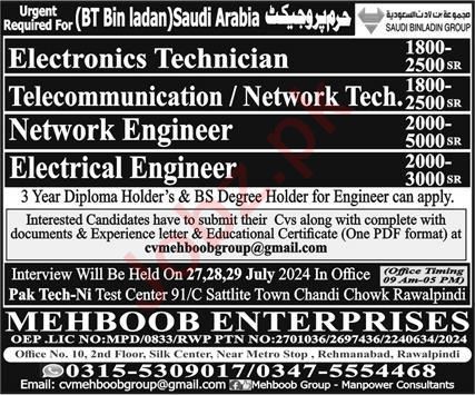 Latest Mehboob Enterprises Overseas Employment Promoters Engineering Posts Jeddah 2025