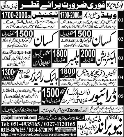 New Brand Manpower is looking for candidates for following posts as per job advertisement published in daily Express Newspaper of February 2, 2024 for location Qatar, qatar Qatar: