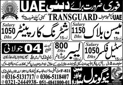 Vacant posts including mason block, labor, steel fixer and shuttering carpenter are announced in New Gondal Manpower Bureau Dubai, dubai Dubai as per 3 July 2023 advertisement in daily Express Newspaper. Matric, Primary and Middle etc. educational qualification will be preferred.