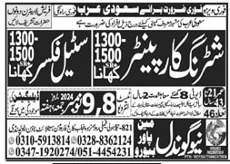New Gondal Manpower Bureau invites applications for job positions advertised in daily Mashriq dated 5 November 2024 for following vacancies in Riyadh, riyadh Saudi Arabia.
