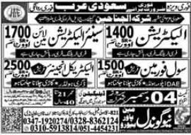New Gondal Manpower Bureau Riyadh, riyadh Saudi Arabia invites applications from eligible candidates for the post of civil foreman, electrical engineer, electrician and electrician lineman as per advertisement of December 4, 2025 published in daily Mashriq Newspaper. Bachelor, Middle, Matric and Intermediate etc. educational qualification will be preferred.