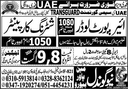 New Gondal Manpower Bureau Abu Dhabi, abu dhabi UAE invites applications from eligible candidates for the post of airport loader and shuttering carpenter as per advertisement of August 8, 2024 published in daily Express Newspaper. Educational qualifications required Matric, Intermediate and Middle etc.