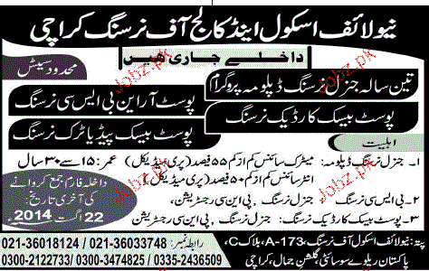 New Life School and College of Nursing Admission in Nursing in Karachi. Read newspaper ad for exact details.