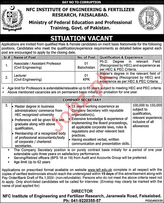 NFC IEFR Institute of Engineering & Technology Jobs 2021