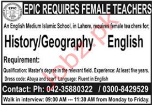 Nglish Medium Islamic School EPIC Jobs In Lahore