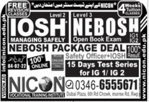 NICON Institute IOSH & NEBOSH Courses Admissions 2022