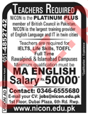 Latest NICON Training Institute Teaching Posts Rawalpindi 2025