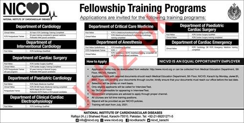 National Institute of Cardiovascular Diseases NICVD Karachi, Government of the Sindh needs services for Clinical Fellow, Doctor, Lady Doctor, Medical Specialist, Cardiology Specialist, Critical Care Medicine Specialist, Paediatric Cardiac Surgery Specialist, Anesthesia Specialist, Cardiac Emergency Specialist, Paediatric Cardiology Specialist.