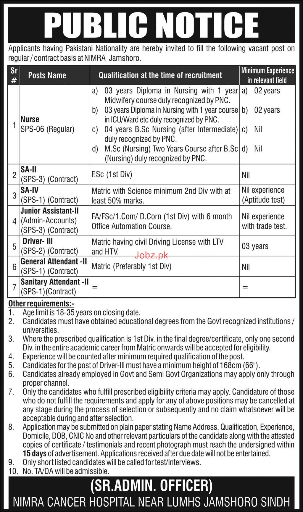 Latest NIMRA Cancer Hospital Medical Posts Jamshoro 2025