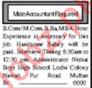 Nishat Boys High School Jobs 2020 For Accountant In Multan