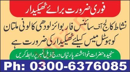 Nishat College Of Science For Boys Contractor Jobs 2024