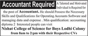 Nishat College of Science latest Private Accounting jobs and others can be applied till 24 April 2025 or as per closing date in newspaper ad. Read complete ad online to know how to apply on latest Nishat College of Science job opportunities.