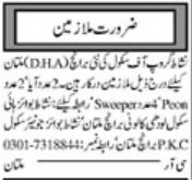 Nishat Group of School Multan, multan Punjab Pakistan invites applications from eligible candidates for the post of sweeper, peon and aya as per advertisement of December 7, 2022 published in daily Khabrain Newspaper. Candidates with Middle, Primary and Matric etc. educational background will be preferred.