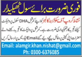 Nishat Group of Schools and Colleges Multan, multan Punjab Pakistan invites applications from eligible candidates for the post of thekedar as per advertisement of September 5, 2024 published in daily Jang Newspaper. Candidates with Intermediate and Matric etc. educational background will be preferred.