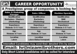 Nizami Brothers Company Jobs 2021 In Lahore