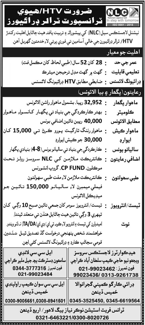 Latest National Logistics Cell NLC Driving Posts Karachi 2025