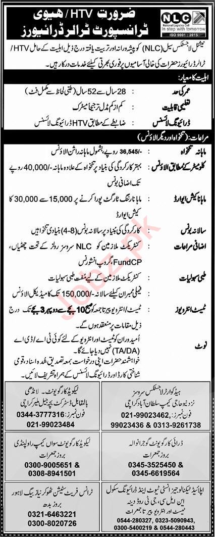 Latest Government jobs in National Logistics Cell NLC in Driving and others can be applied till NaN undefined NaN or as per closing date in newspaper ad. Read complete ad online to know how to apply on latest National Logistics Cell NLC job opportunities.