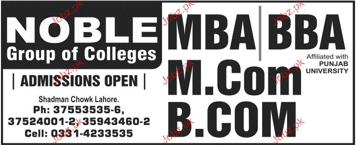 Nobel Group Colleges Admission in MBA, BBA, M.Com and B.Com in Lahore Read newspaper ad for exact details.