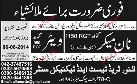 Non Makers and Waiters Job Opportunity