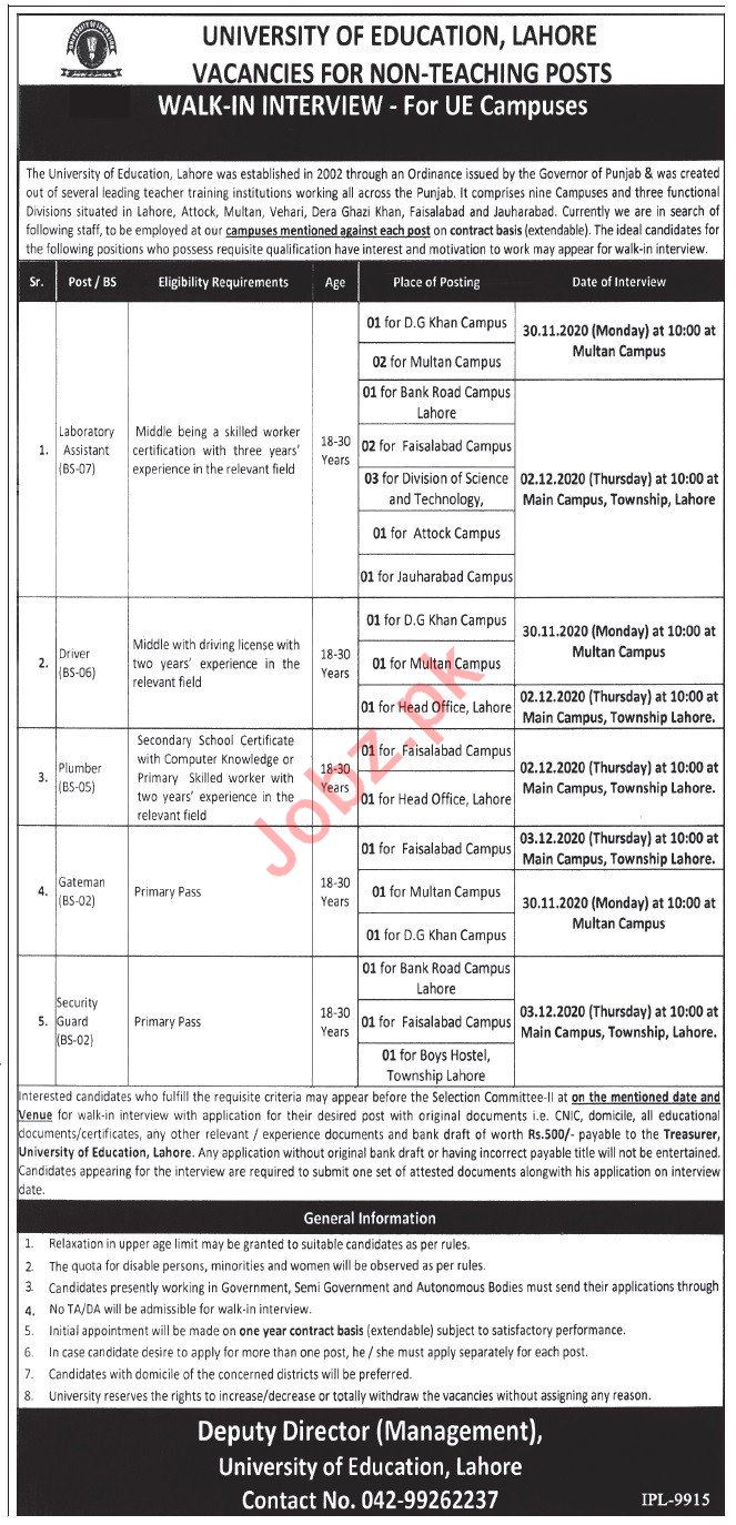 Non Teaching Staff Jobs 2020 University Of Education Lahore