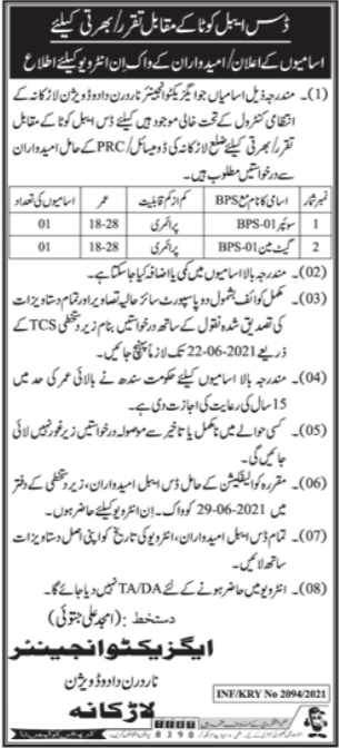 Northern Dadu Division Non Technical Staff Jobs 2021