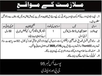 Government Organization invites applications for job positions advertised in daily Nawaiwaqt dated 3 December 2025 for following vacancies in Rawalpindi, rawalpindi Punjab Pakistan.