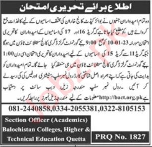 Vacant posts including Bursar, Messing Officer, Lecturer Islamiat, Lecturer Computer Science, Lecturer, Lecturer Chemistry, Lecturer Urdu, Admin Officer, Librarian, Lecturer English, Lecturer Biology, Lecturer Physics, Lecturer Math, Medical Officer, Nursing Staff and Lecturer Pak Studies are announced in Higher & Technical Education Department Kharan, kharan and quetta Balochistan Pakistan as per 8 January 2023 advertisement in daily Jang Newspaper. Educational qualifications required M.com, M.sc, Master, MBBS, MA and MBA etc.